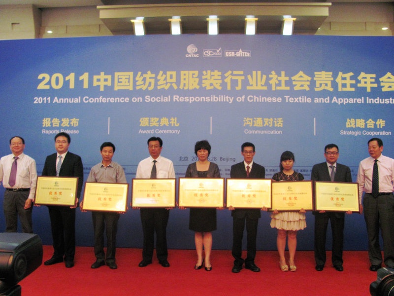會(huì)議期間,中國紡織工業(yè)協(xié)會(huì)發(fā)布了“2010-2011中國紡織服裝行業(yè)社會(huì)責(zé)任報(bào)告”,16家紡織服裝企業(yè)同時(shí)發(fā)布了企業(yè)的2010年度社會(huì)責(zé)任報(bào)告。我公司發(fā)布的《2010年度社會(huì)責(zé)任報(bào)告》獲得了協(xié)會(huì)頒發(fā)的“2011年度中國紡織服裝行業(yè)社會(huì)責(zé)任信息披露實(shí)踐優(yōu)秀獎(jiǎng)”。莫總在發(fā)表獲獎(jiǎng)感言時(shí)表示:在堅(jiān)持“為顧客創(chuàng)造價(jià)值、為企業(yè)增創(chuàng)效益、為員工謀求發(fā)展、為社會(huì)多做貢獻(xiàn)”的企業(yè)核心價(jià)值觀指導(dǎo)下,我們將繼續(xù)努力,為紡織行業(yè)的發(fā)展做出新的貢獻(xiàn)!